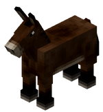 Donkey adalah mob yang bisa ditunggangi dan juga dapat dipasangi chest atau peti yang berguna membawa barang diperjalanan. Donkey makananya seperti kuda dan mule yaitu gandum, cara menternakan sama degan kuda,dan cara menjinakanya sama seperti kuda.2.Donkey